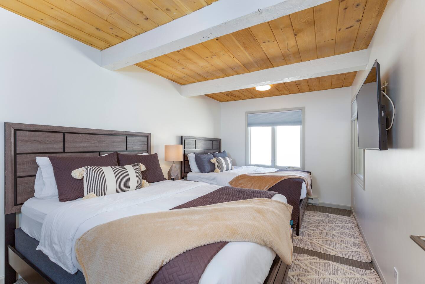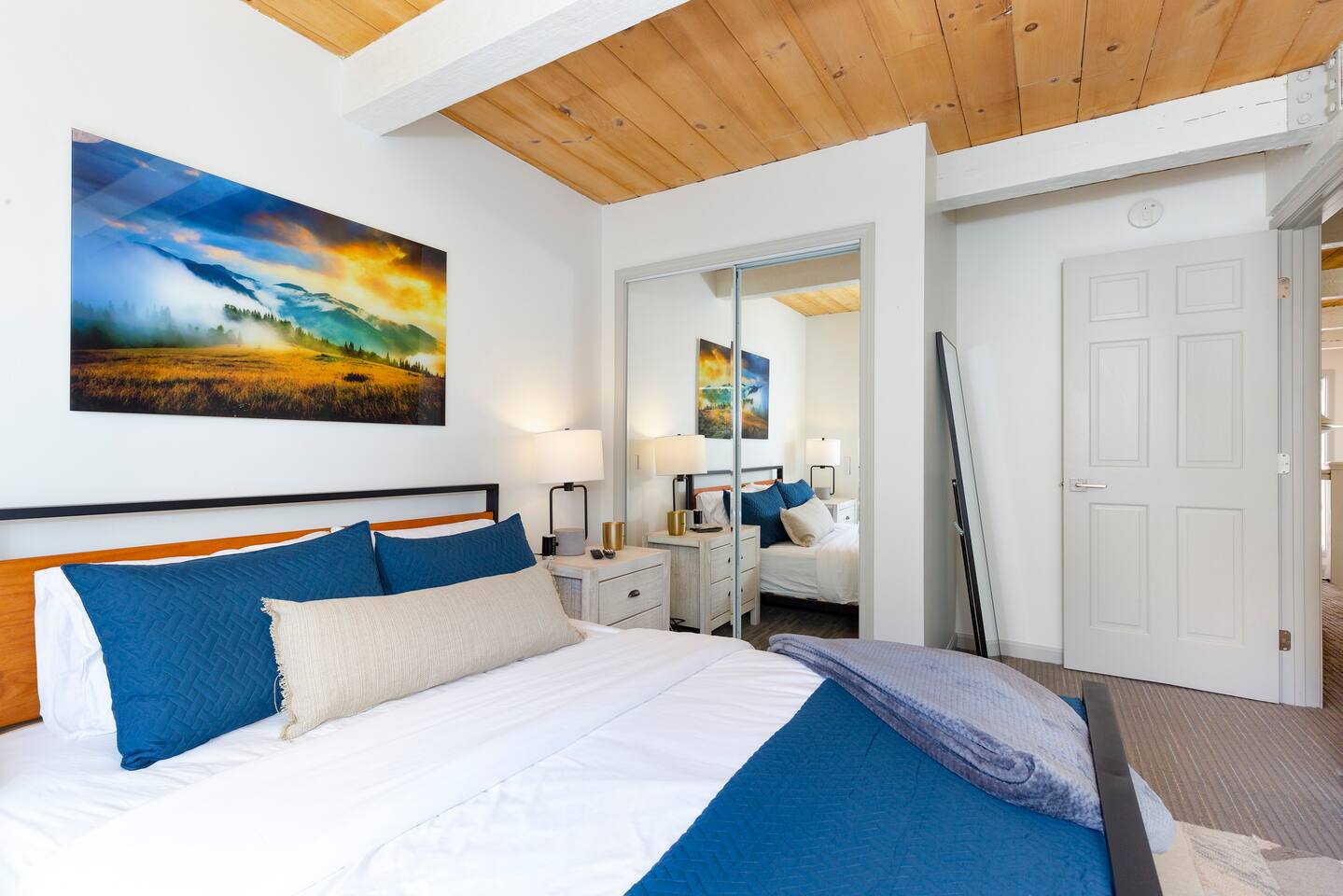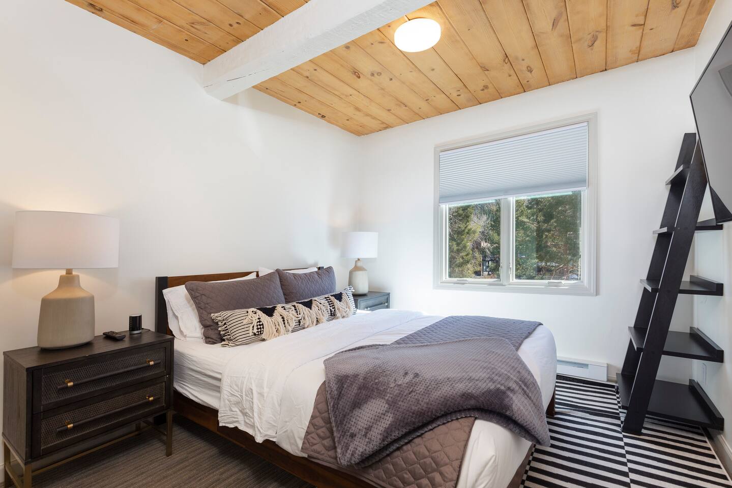 ASK ABOUT LAST MINUTE SPECIALS!! Our amazing modern Aspen Core 3 Bedroom 2 Bathroom Loft is newly furnished, bright & sunny in the HEART of the Aspen Core. No neighbors above or below, keypad for self check in and set back off of the road, so it's very quiet yet walkable to anywhere in town and all trails. Each master bedroom has a queen size bed and the third bedroom has two queen sized beds - 1 Reserved Parking upon request $150 pet fee per pet -- please confirm pets before booking!